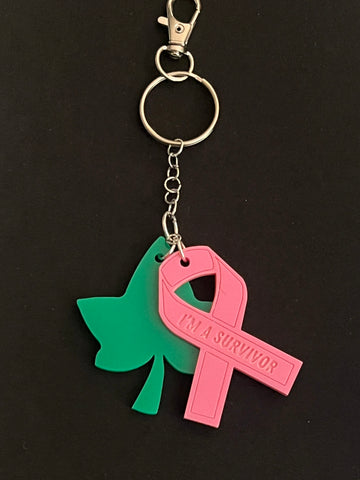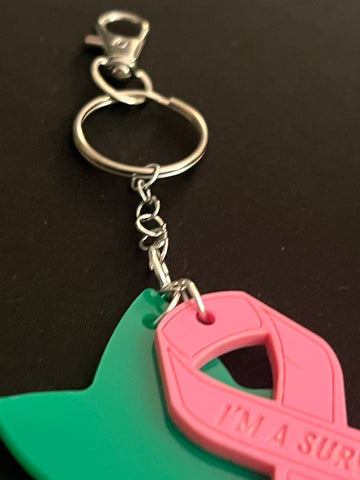 Buy a keychain for yourself or as a gift. The pink ribbons are available plain for those who support the fight to cure cancer or with the engraved words “I AM A SURVIVOR” for those who are still fighting!