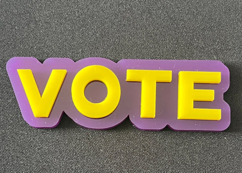 Represent your colors and encourage people to VOTE! This acrylic badge is magnetic-backed so that you can easily wear it on various shirts, dresses, jackets, sweaters, etc. Buy one for yourself and a soror or frat brother.
