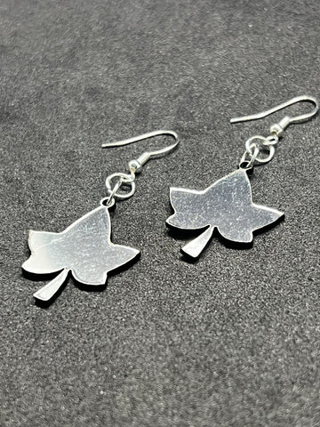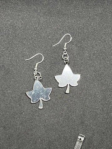Ivy leaf earrings can be made as dangles, stud post earrings, clip-on dangles, or regular clip-ons. Ivy Leaf earrings drop pieces are 1” long.