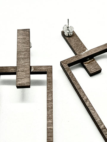 A triangle on a triangle. These earrings are simple enough to wear with various outfits, but cool enough to add style. They are all medium size stud post earrings.
