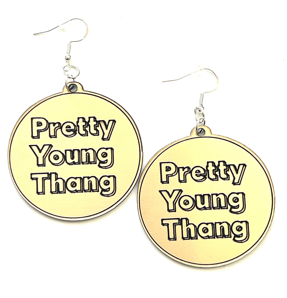 Checkout this new collection of earrings with cute messages or graphic drawings on a specialty two-tone gold/black acrylic material. Perfect for wearing day or night!