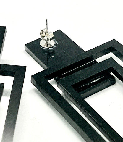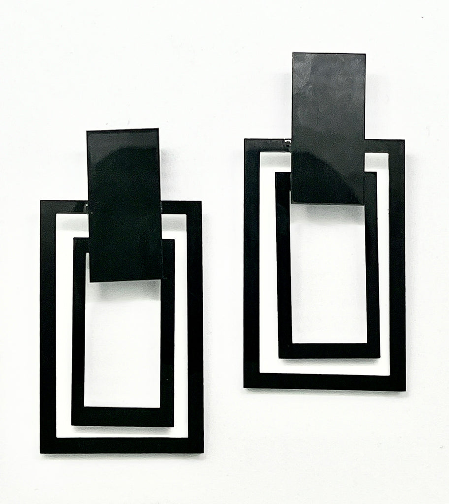 Rectangles, on rectangles, on a rectangle. These earrings are simple enough to wear with various outfits, but cool enough to add style. They are all medium-size stud post earrings.